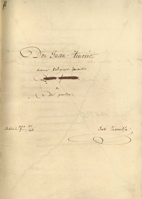Este drama religioso-fantástico en dos partes del dramaturgo y poeta pucelano –quien, como vimos a su vez en la entrada ‘De paseo (literalmente) por la RAE’ fue elegido en dos ocasiones miembro de la RAE, pues fue eliminado de su nómina la primera por no leer el discurso de ingreso en el plazo establecido, y al hacerlo en la segunda fue el primer académico que lo hizo en una composición en verso-, que recoge el mito del personaje libertino que no respeta ley humana ni divina y hace gala de seducir y engañar a las mujeres –también denominado burlador-, es tal vez la pieza más representada de la literatura española desde que fuera estrenada en el teatro de la Cruz, en Madrid, el 28 de marzo de 1844.
